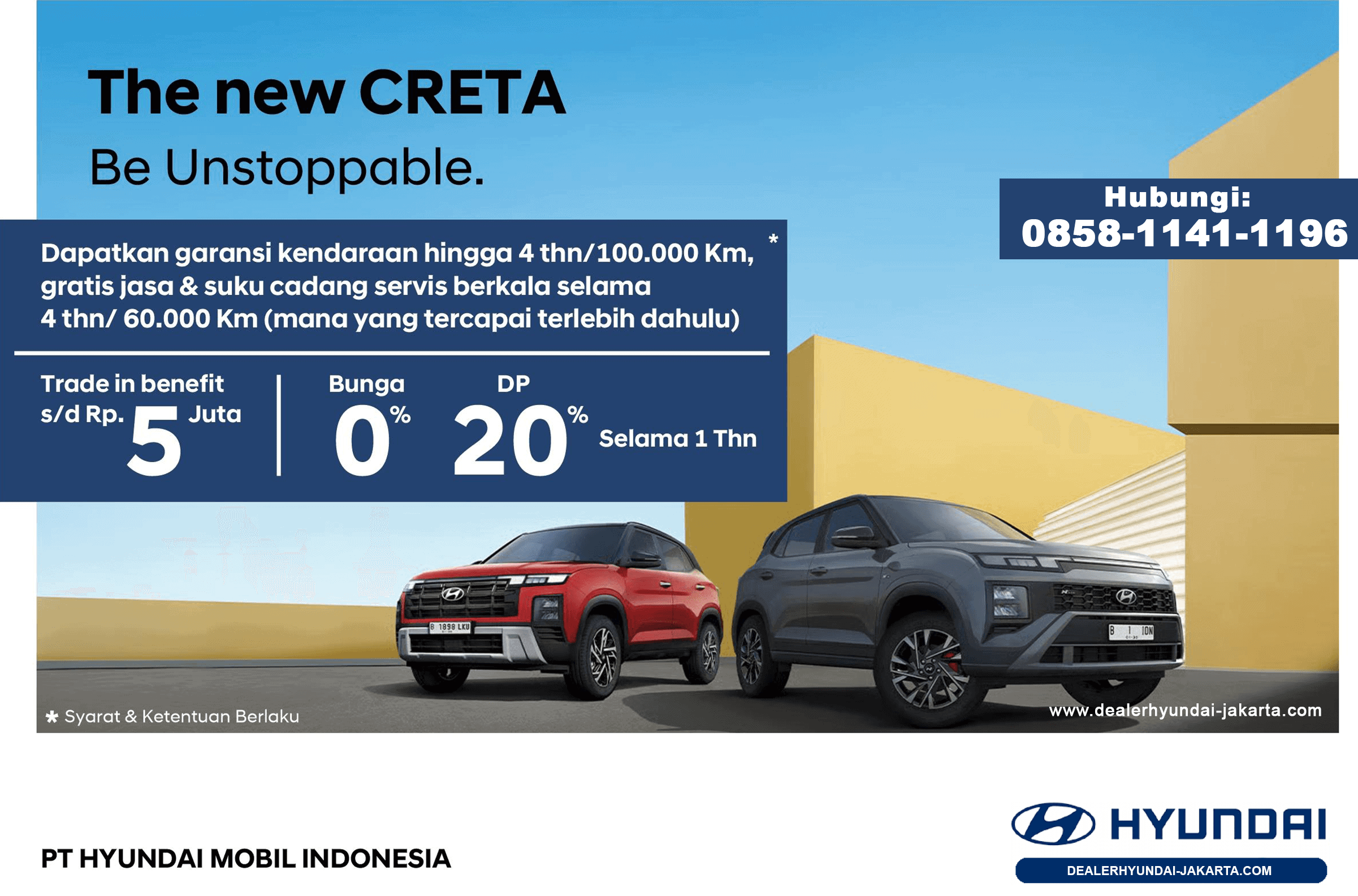 Dapatkan berbagai diskon, cashback, hingga DP ringan eksklusif hanya di Hyundai Kota Bekasi. Update promo terbaru langsung dari tim marketing kami.